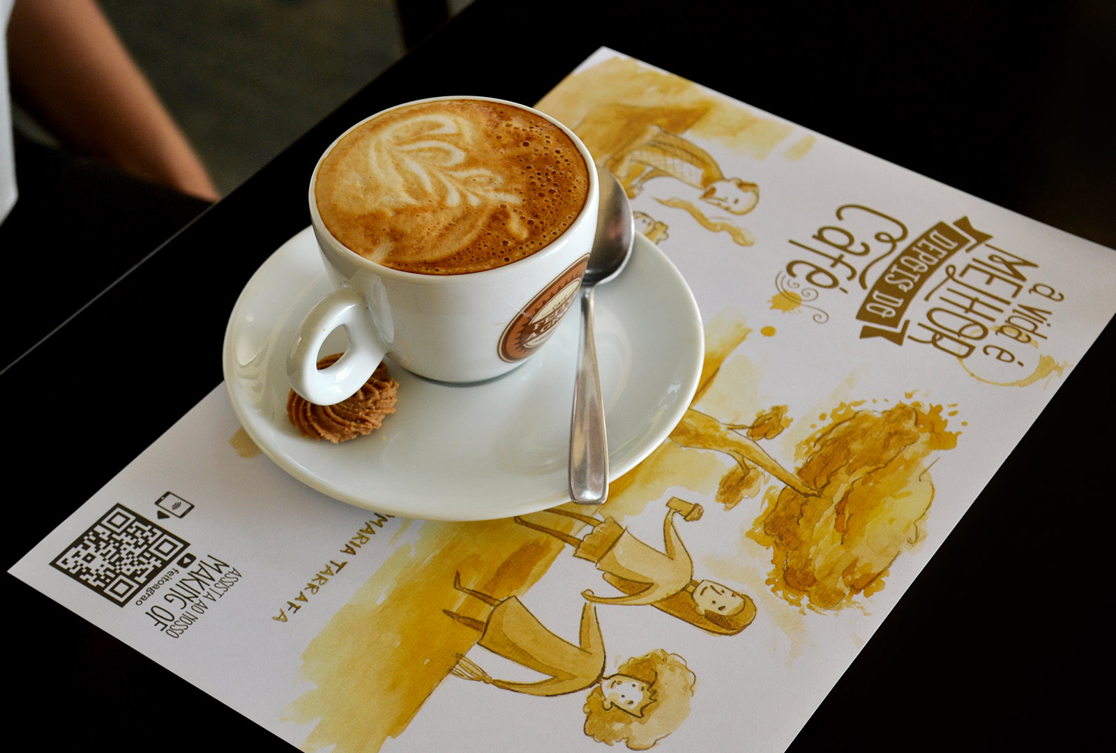 Com o tema “A Vida é Melhor Depois do Café” e muita criatividade, retratamos as fases da vida e momentos de descontração e interação entre os personagens em torno de um dia com café. No Jogo Americano, que serve de base para os pratos e talheres servidos no Feito a Grão, o cliente recebe instruções para acessar o making of de produção disponível no Youtube. As lojas também divulgam o vídeo em suas televisões. Assinta o Making Of: