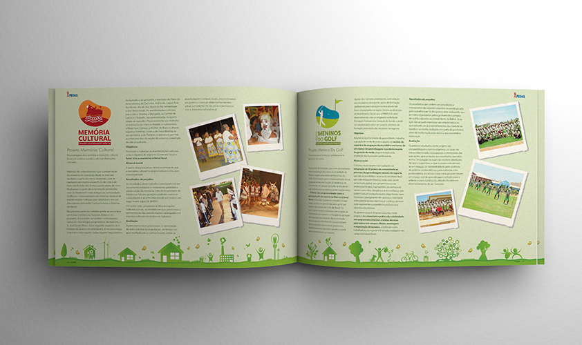 O livro do Programa VOAR foi confeccionado com papel 100% reciclado, que traduz na prática a sinergia entre geração de valor, oportunidade, aprendizado e respeito. Aspectos que serviram de base para a montagem das ilustrações com imagens da comunidade beneficiada pelo programa. O material foi produzido em A3 (tamanho fechado), capa dura e papel reciclado.